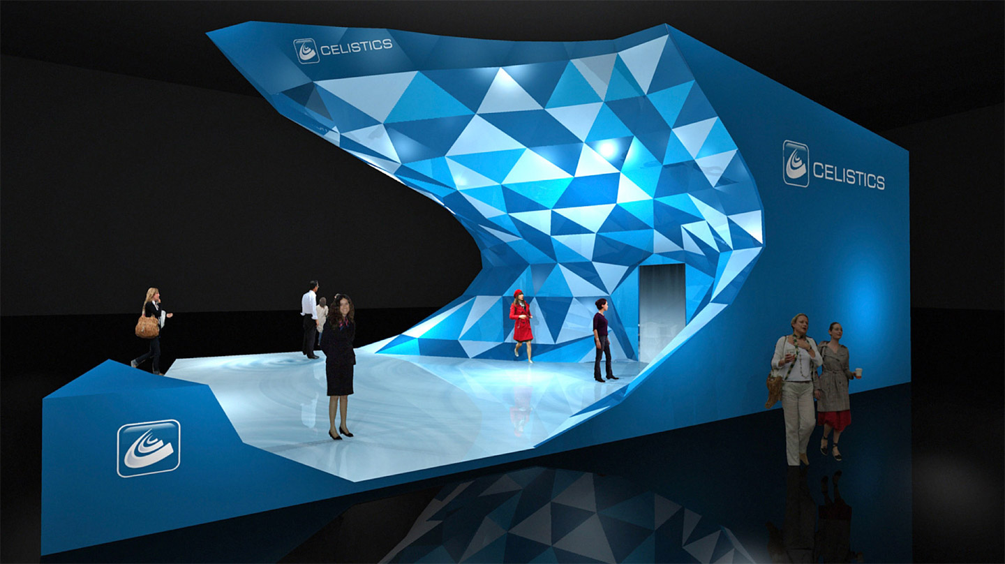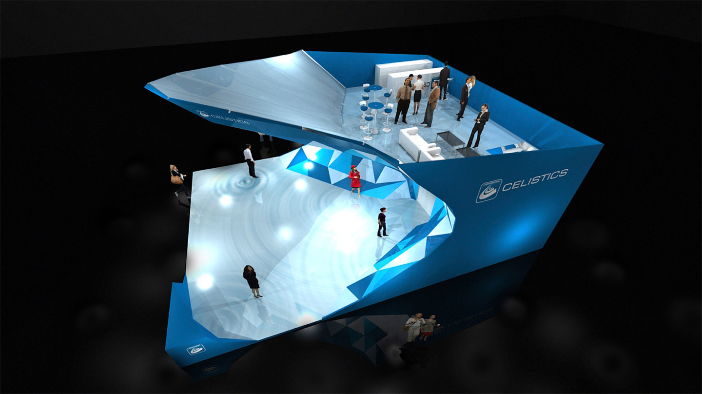 El elemento tecnológico elegido fue el suelo interactivo, que permite grandes opciones de comunicación e interacción con el visitante. El telón de fondo que supone la «ola» que propusimos a Celistics es el marco perfecto para el escenarió del suelo interactivo.