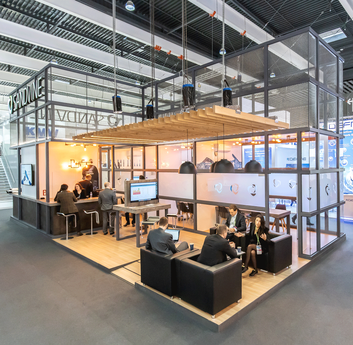 El principal efecto de diseño de este año se centra en la pantalla curva de grandes dimensiones que permite la mayor visibilidad de la marca desde el pasillo central del pabellón, acompañando al visitante a medida que se acerca al espacio. Se consigue, de esta forma, un equilibrio perfecto entre la potencia estética y la funcionalidad más rigurosa, que permite el mejor acceso y la circulación interior, desarrollando un amplísimo programa de salas de reuniones y demo stations.